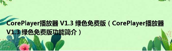 CorePlayer播放器 V1.3 绿色免费版(CorePlayer播放器 V1.3 绿色免费版功能简介)