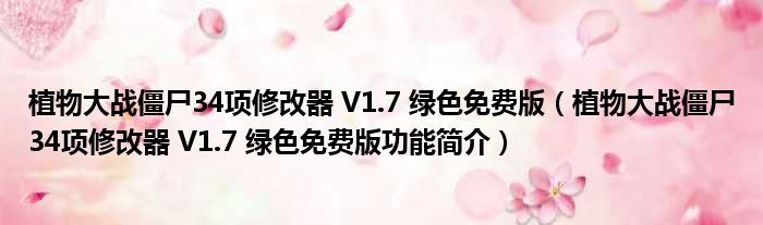 植物大战僵尸34项修改器 V1.7 绿色免费版(植物大战僵尸34项修改器 V1.7 绿色免费版功能简介)