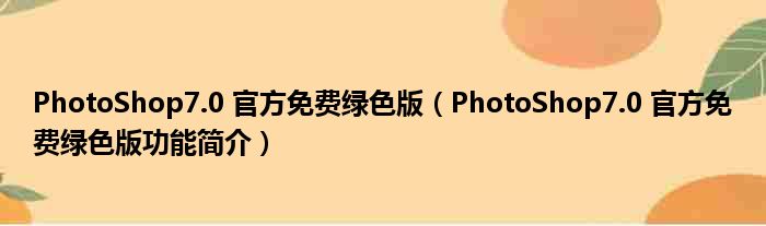 PhotoShop7.0 官方免费绿色版(PhotoShop7.0 官方免费绿色版功能简介)