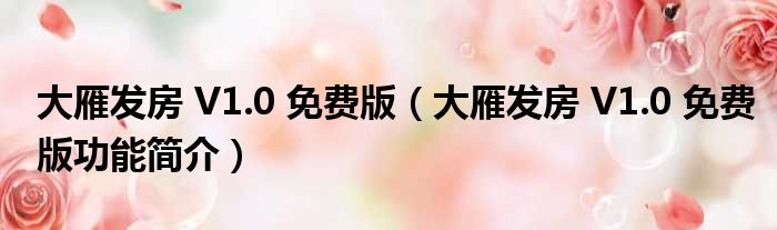 大雁发房 V1.0 免费版(大雁发房 V1.0 免费版功能简介)