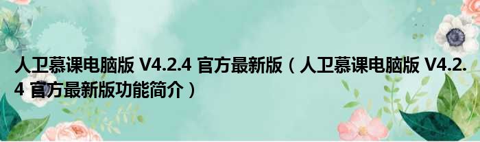 人卫慕课电脑版 V4.2.4 官方最新版(人卫慕课电脑版 V4.2.4 官方最新版功能简介)