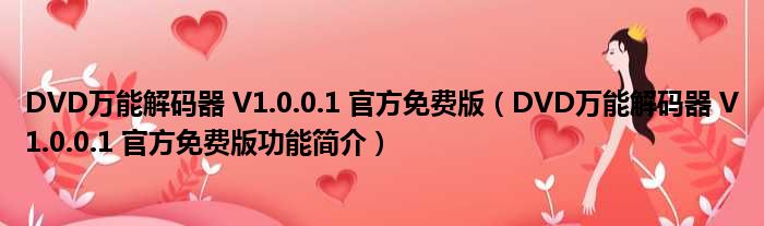 DVD万能解码器 V1.0.0.1 官方免费版(DVD万能解码器 V1.0.0.1 官方免费版功能简介)