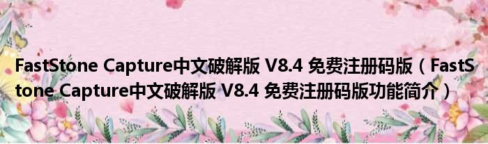 FastStone Capture中文破解版 V8.4 免费注册码版(FastStone Capture中文破解版 V8.4 免费注册码版功能简介)