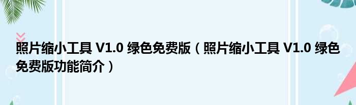 照片缩小工具 V1.0 绿色免费版(照片缩小工具 V1.0 绿色免费版功能简介)