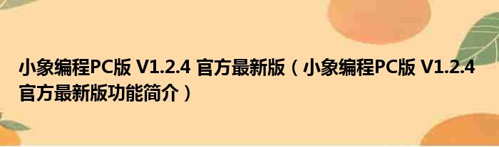 导读 大家好,关于小象编程PC版 V1 2 4 官方最新版,小象编程PC版 V1 2 4 官方最新版功能简介这个很多人还不知道,小勒来为大家解答以上的问题