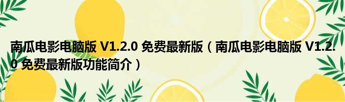南瓜电影电脑版 V1.2.0 免费最新版(南瓜电影电脑版 V1.2.0 免费最新版功能简介)