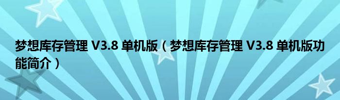 梦想库存管理 V3.8 单机版(梦想库存管理 V3.8 单机版功能简介)