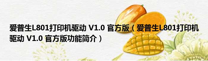 爱普生L801打印机驱动 V1.0 官方版(爱普生L801打印机驱动 V1.0 官方版功能简介)