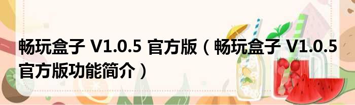 畅玩盒子 V1.0.5 官方版(畅玩盒子 V1.0.5 官方版功能简介)
