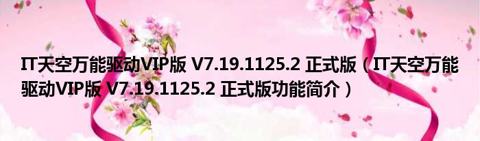 IT天空万能驱动VIP版 V7.19.1125.2 正式版(IT天空万能驱动VIP版 V7.19.1125.2 正式版功能简介)