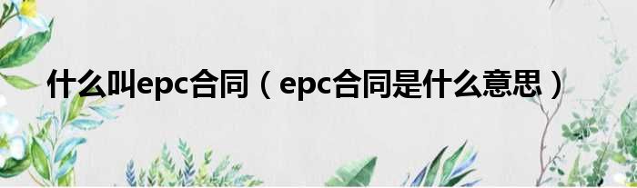 导读 大家好,今天小六子来为大家解答以下的问题,关于什么叫epc合同,epc合同是什么意思这个很多人还不知道,现在让我们一起来看看吧!1、是指公