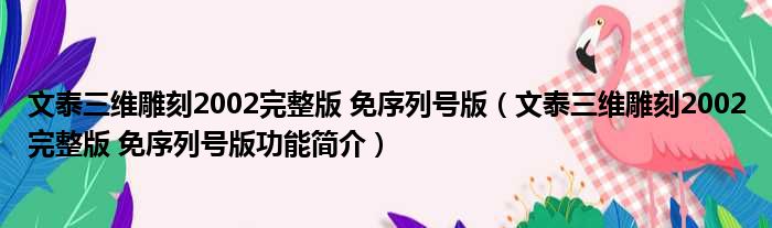 文泰三维雕刻2002完整版 免序列号版(文泰三维雕刻2002完整版 免序列号版功能简介)