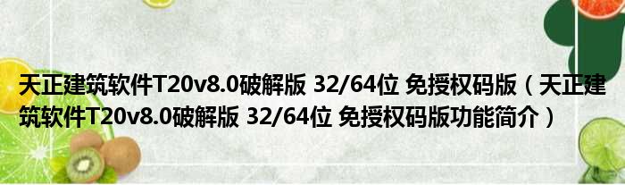 天正建筑软件T20v8.0破解版 32/64位 免授权码版(天正建筑软件T20v8.0破解版 32/64位 免授权码版功能简介)
