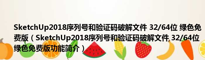 SketchUp2018序列号和验证码破解文件 32/64位 绿色免费版(SketchUp2018序列号和验证码破解文件 32/64位 绿色免费版功能简介)