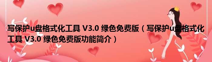 导读 大家好,关于写保护u盘格式化工具 V3 0 绿色免费版,写保护u盘格式化工具 V3 0 绿色免费版功能简介这个很多人还不知道,小勒来为大家解答