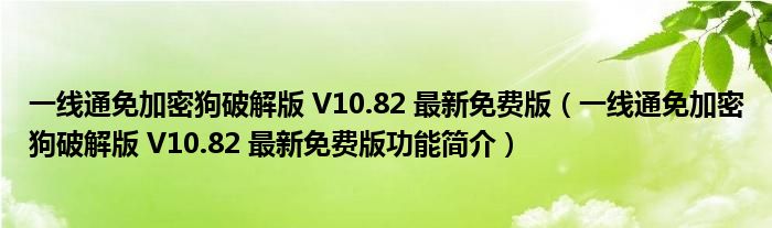 导读 大家好,关于一线通免加密狗破解版 V10 82 最新免费版,一线通免加密狗破解版 V10 82 最新免费版功能简介这个很多人还不知道,小勒来为大