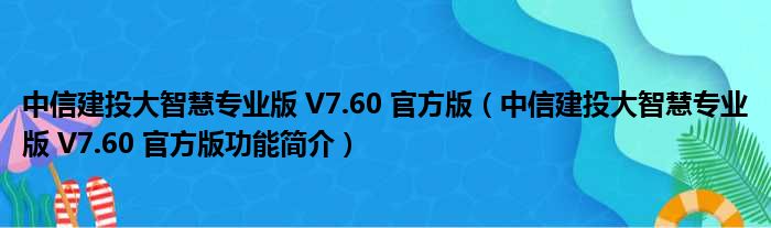 导读 大家好,关于中信建投大智慧专业版 V7 60 官方版,中信建投大智慧专业版 V7 60 官方版功能简介这个很多人还不知道,小勒来为大家解答以上