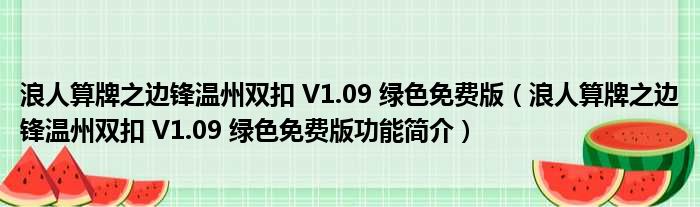 浪人算牌之边锋温州双扣 V1.09 绿色免费版(浪人算牌之边锋温州双扣 V1.09 绿色免费版功能简介)