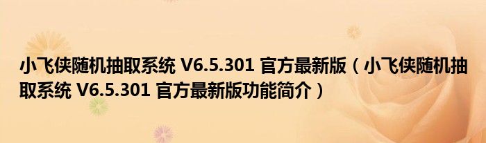 小飞侠随机抽取系统 V6.5.301 官方最新版(小飞侠随机抽取系统 V6.5.301 官方最新版功能简介)