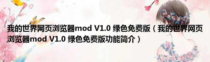 导读 大家好,关于我的世界网页浏览器mod V1 0 绿色免费版,我的世界网页浏览器mod V1 0 绿色免费版功能简介这个很多人还不知道,小勒来为大家
