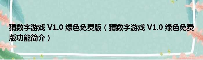 猜数字游戏 V1.0 绿色免费版(猜数字游戏 V1.0 绿色免费版功能简介)