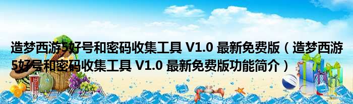 造梦西游5好号和密码收集工具 V1.0 最新免费版(造梦西游5好号和密码收集工具 V1.0 最新免费版功能简介)
