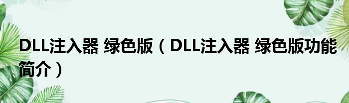 DLL注入器 绿色版(DLL注入器 绿色版功能简介)