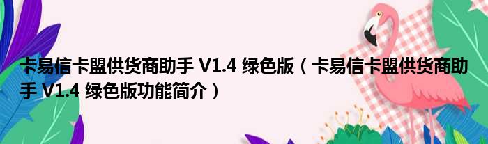 卡易信卡盟供货商助手 V1.4 绿色版(卡易信卡盟供货商助手 V1.4 绿色版功能简介)