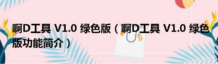 啊D工具 V1.0 绿色版(啊D工具 V1.0 绿色版功能简介)