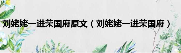 刘姥姥一进荣国府原文(刘姥姥一进荣国府)