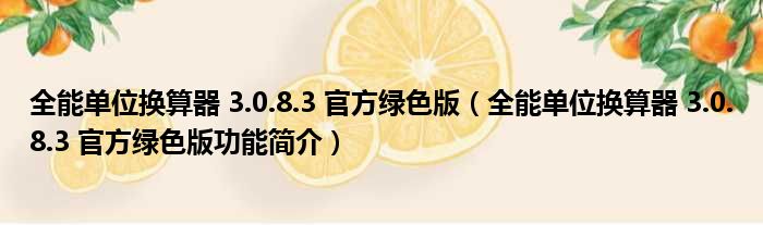 全能单位换算器 3.0.8.3 官方绿色版(全能单位换算器 3.0.8.3 官方绿色版功能简介)