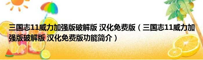 三国志11威力加强版破解版 汉化免费版(三国志11威力加强版破解版 汉化免费版功能简介)