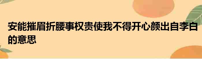安能摧眉折腰事权贵使我不得开心颜出自李白的意思