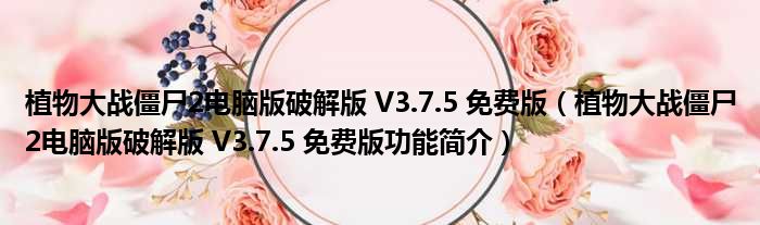 大家好,关于植物大战僵尸2电脑版破解版 V3.7.5 免费版,植物大战僵尸2电脑版破解版 V3.7.5 免费版功能简介这个很多人还不知道,小勒来为大家解答以上的问题,现在让我们一起来看看吧!