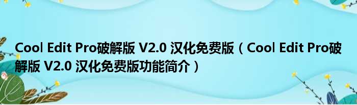 Cool Edit Pro破解版 V2.0 汉化免费版(Cool Edit Pro破解版 V2.0 汉化免费版功能简介)