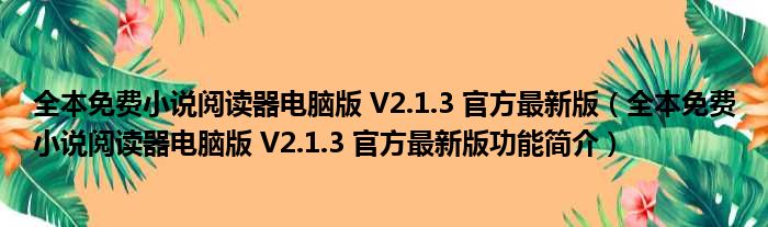 导读 大家好,关于全本免费小说阅读器电脑版 V2 1 3 官方最新版,全本免费小说阅读器电脑版 V2 1 3 官方最新版功能简介这个很多人还不知道,小