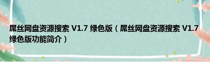 屌丝网盘资源搜索 V1.7 绿色版(屌丝网盘资源搜索 V1.7 绿色版功能简介)