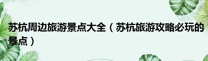 苏杭周边旅游景点大全(苏杭旅游攻略必玩的景点)