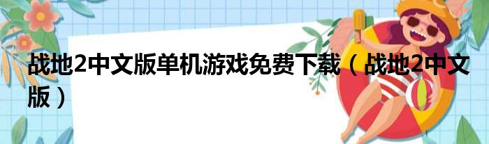 战地2中文版单机游戏免费下载(战地2中文版)