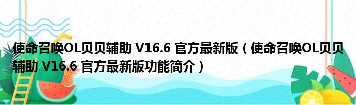 使命召唤OL贝贝辅助 V16.6 官方最新版(使命召唤OL贝贝辅助 V16.6 官方最新版功能简介)