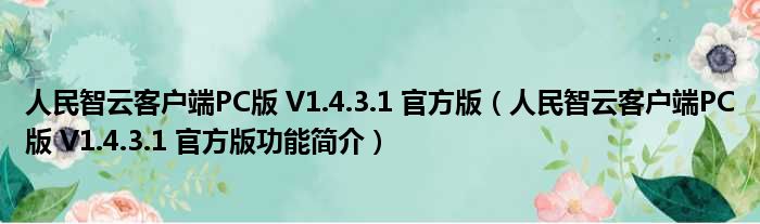 导读 大家好,关于人民智云客户端PC版 V1 4 3 1 官方版,人民智云客户端PC版 V1 4 3 1 官方版功能简介这个很多人还不知道,小勒来为大家解答以