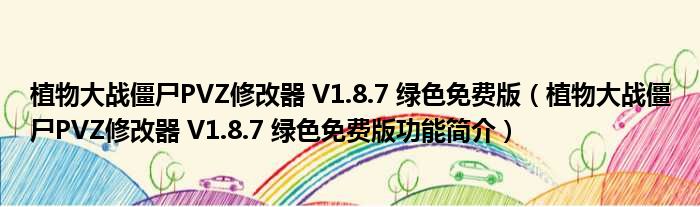 植物大战僵尸PVZ修改器 V1.8.7 绿色免费版(植物大战僵尸PVZ修改器 V1.8.7 绿色免费版功能简介)