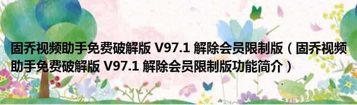 固乔视频助手免费破解版 V97.1 解除会员限制版(固乔视频助手免费破解版 V97.1 解除会员限制版功能简介)