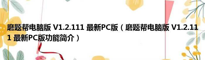 磨题帮电脑版 V1.2.111 最新PC版(磨题帮电脑版 V1.2.111 最新PC版功能简介)