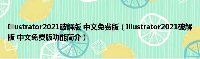Illustrator2021破解版 中文免费版(Illustrator2021破解版 中文免费版功能简介)