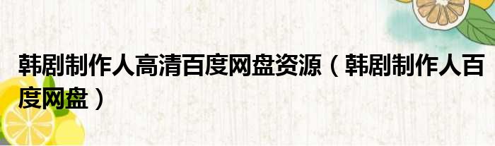 韩剧制作人高清百度网盘资源(韩剧制作人百度网盘)