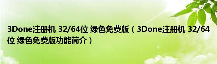3Done注册机 32/64位 绿色免费版(3Done注册机 32/64位 绿色免费版功能简介)
