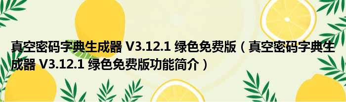 真空密码字典生成器 V3.12.1 绿色免费版(真空密码字典生成器 V3.12.1 绿色免费版功能简介)