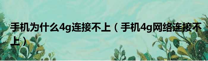 导读 大家好,今天小六子来为大家解答以下的问题,关于手机为什么4g连接不上,手机4g网络连接不上这个很多人还不知道,现在让我们一起来看看吧!1