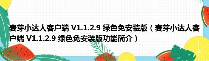 麦芽小达人客户端 V1.1.2.9 绿色免安装版(麦芽小达人客户端 V1.1.2.9 绿色免安装版功能简介)